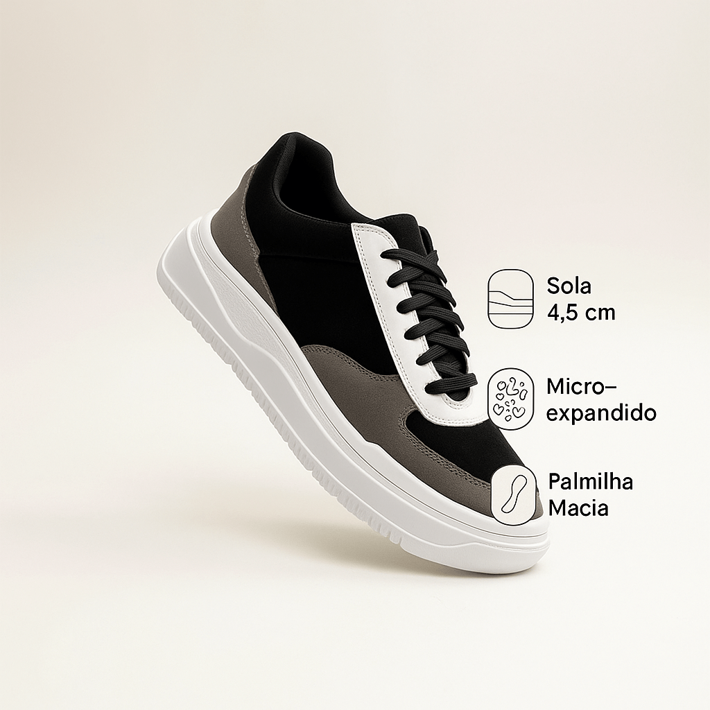 Não é só aparência: a sola em micro-expandido é leve e antiderrapante, a palmilha é macia e pensada para o uso o dia inteiro, e a forma padrão significa que você usa sua numeração habitual. Ganhe centímetros, postura mais confiante e conforto sem sacrificar estilo, do trabalho ao happy hour.