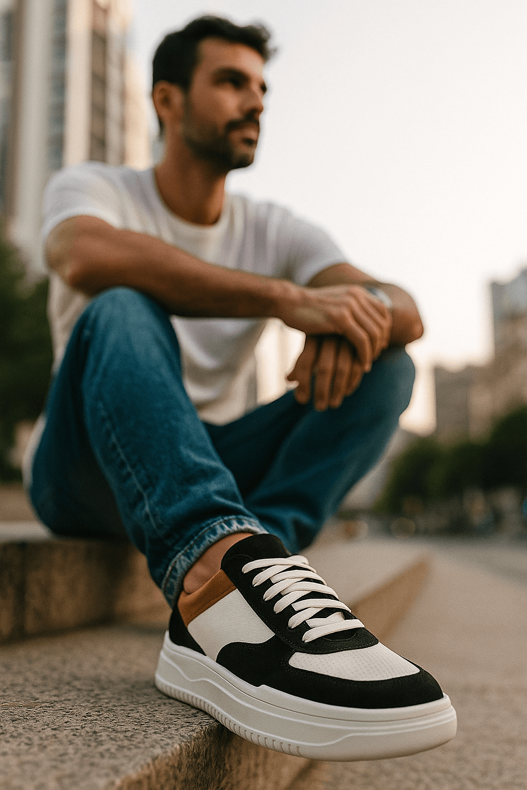 Visual imponente + sola 4,5cm + conforto o dia todo. Escolha o sapatênis masculino que transforma looks.