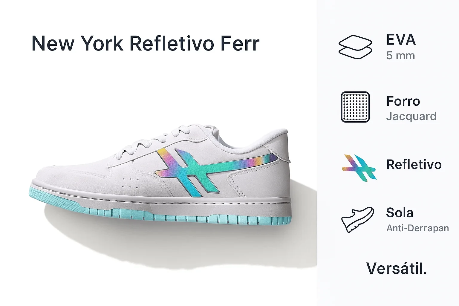 O New York Refletivo Ferr entra discreto e domina o visual com acabamento que brilha no momento certo.